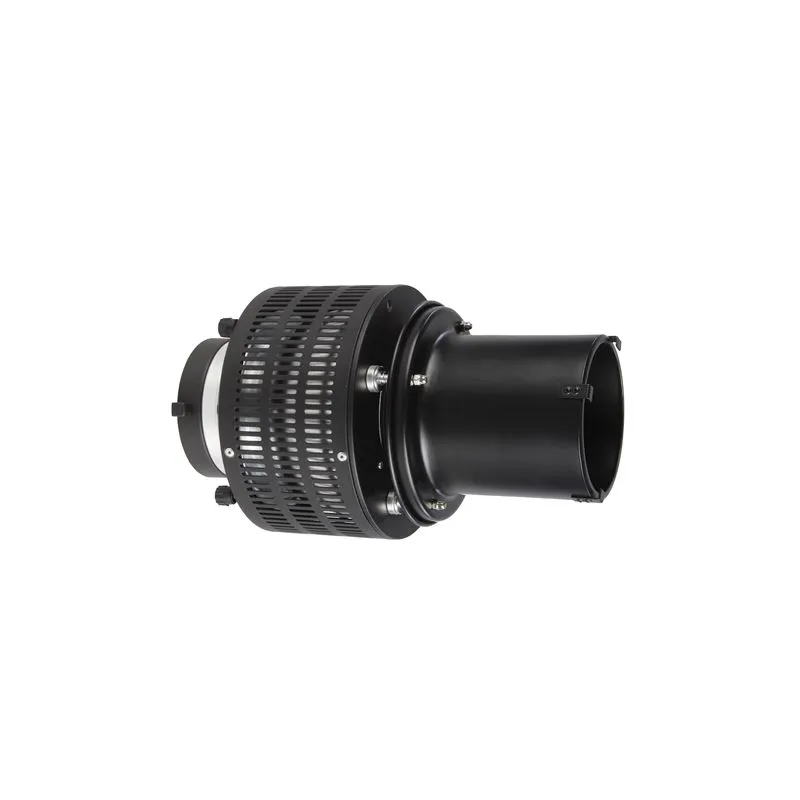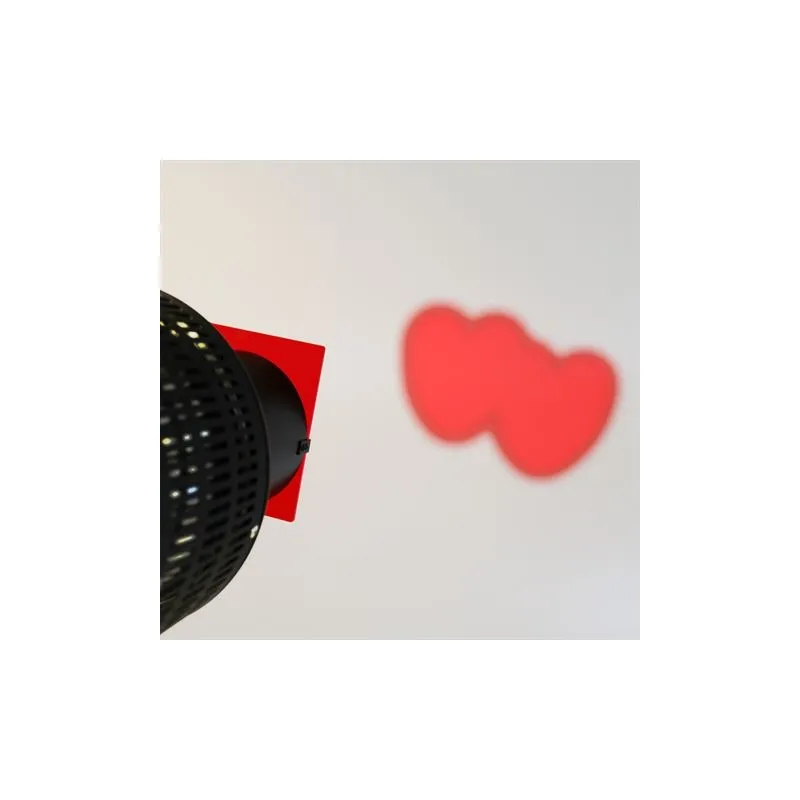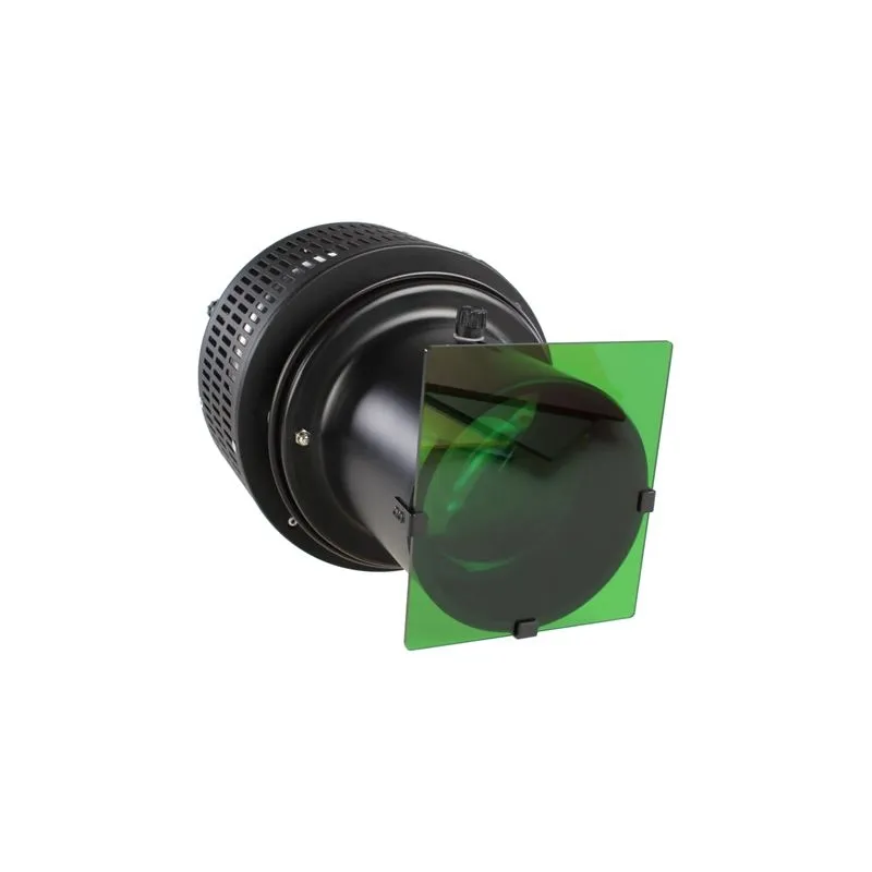 The SK-OS1 comes standard with a Bowens/Linkstar adapter ring, which you can use to attach the optical snoot to your lamp. You then choose a Gobo shape and color filter and place them in the holders at the front of the SK-OS1. To see the result sharp on the wall, adjust the knob on the top of the SK-OS1. This shifts inside the lens which takes care of the projection. The metal construction makes it possible to use the SK-OS1 reliably in any location. To see the color and shape well in daylight, we recommend using a flash lamp of at least 600 Ws. The light is emitted at an angle of approximately 20 degrees.