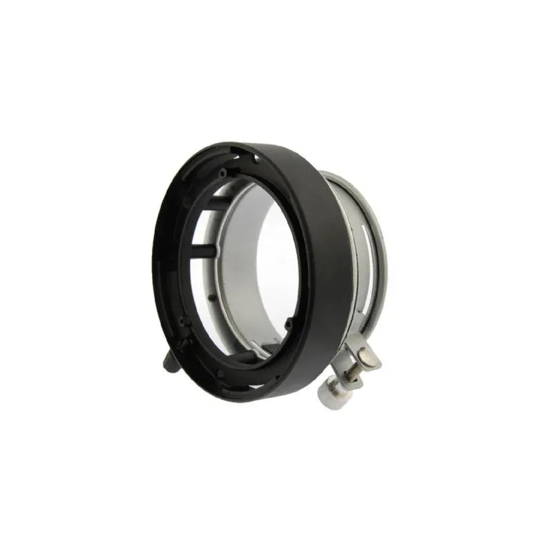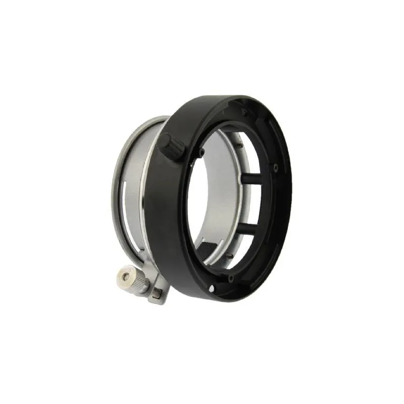 This adapter ring can be mounted on studio flashes of different brands with a neck diameter of at least 8.8 cm and a maximum of 9.5 cm. Weight: 300 grams.