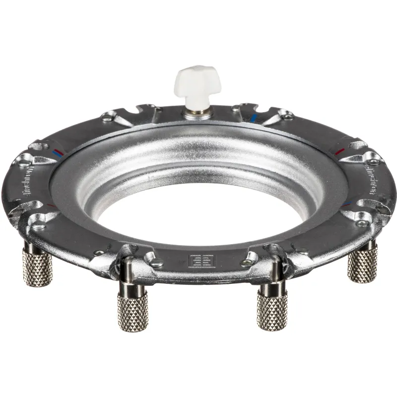 Featuring enhanced strength at key points and an all metal construction, the Rotalux Speed Ring for Alien Bee, Balcar Flash Heads from Elinchrom provides the key to using your go-to flash heads with Rotalux softboxes. The speed ring offers fast setup and is compatible with rectangular softboxes, octaboxes, stripboxes, square softboxes, and octa softboxes via color-coded sockets.
