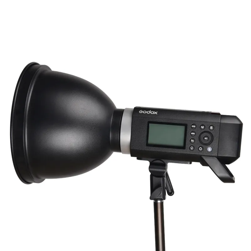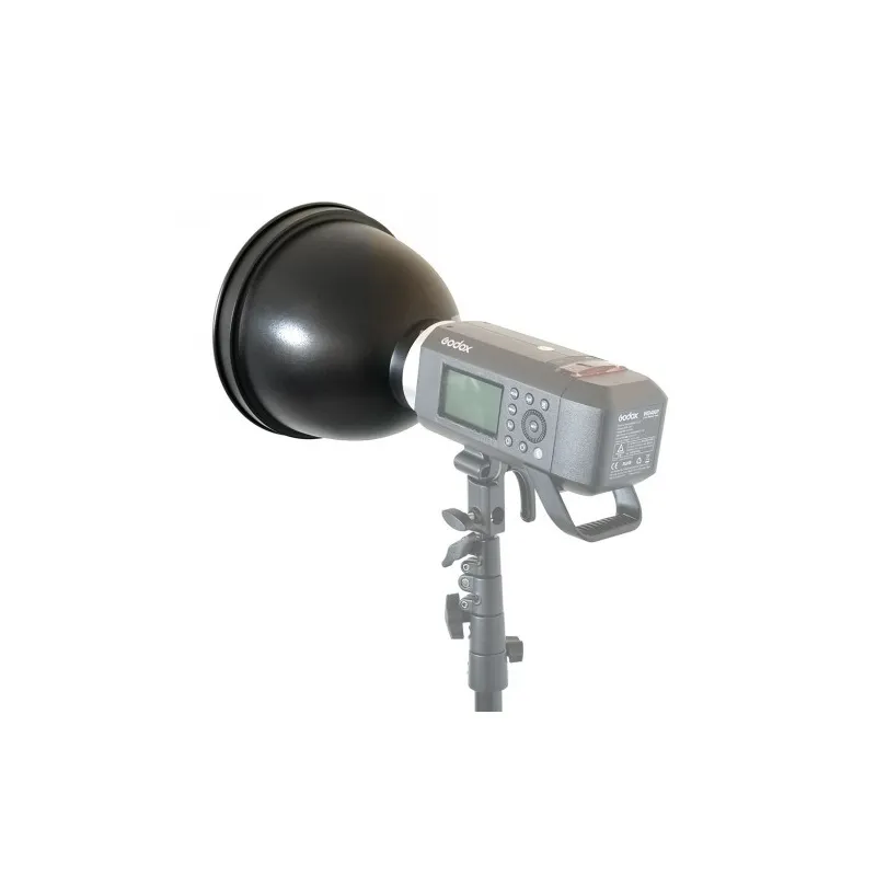 The Godox Long Focus Reflector for AD400Pro is specially designed for this type of flash head. The reflector is ideal for shaping light and the outline of your subject and for controlling the light angle and focusing the light. It is made of high quality aluminum and has a high scratch resistance.