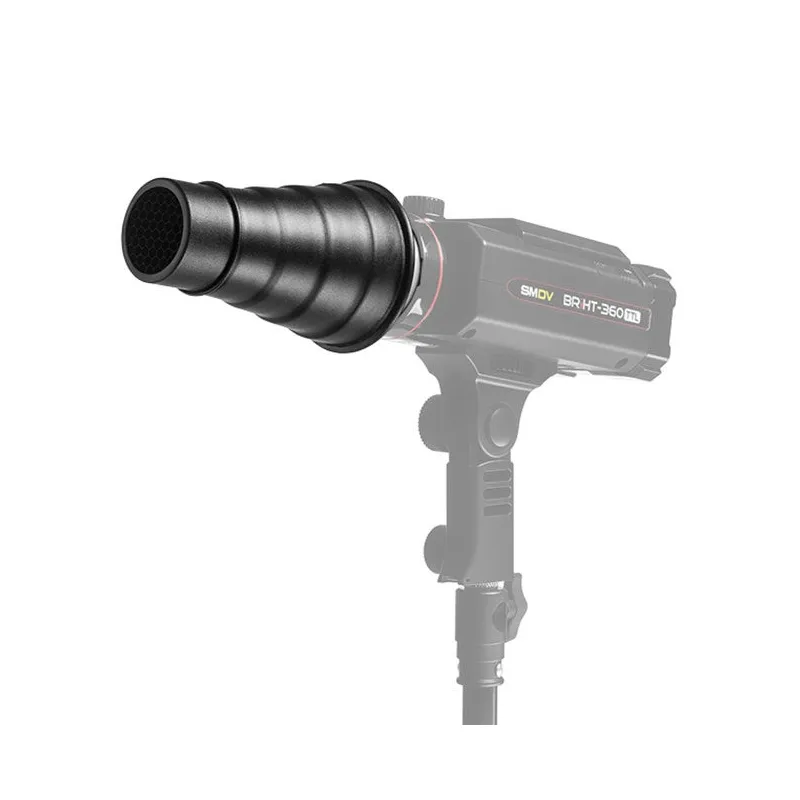 The SMDV BR-40 Snoot is a conical snoot for the SMDV Briht-360 Studio Flash. With this snoot, you can bundle the light of the flash in an extreme way. This allows you to focus an accent light on a subject. You can also easily create hair light for portraits or a nice background light for product photography.