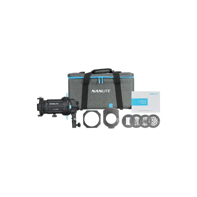 The 36° Projector Mount for Forza 60 and 60B LED Monolights from Nanlite is an accessory for controlling the Forza's output for theatrical effects, hair lighting, and selective lighting of your subject, via its non-curved lenses that eliminate aberration and minimize distortion, while rendering a 36° beam spread. Advanced features include etched interior walls to prevent edge dispersion and fringing and a nylon-coated housing that allows easy handling after shooting.