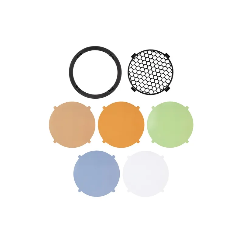 Play with colour and gain more control over light with the Westcott FJ80 Magnetic Grid and Gel Pack. The set includes a honeycomb grid, window green gel filter, CTB gel filter, 1/2 CTO gel filter, 3/4 CTO gel filter and diffusion filter for the Westcott FJ80 speedlight. The grid and filters can be quickly attached to the FJ80 with the included magnetic clip.