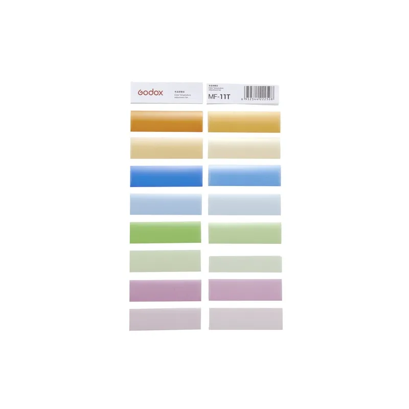 This MF-11T Color Temperature Adjustment Set from Godox for the MF12 Macro Flash contains an assortment of gel filters to adjust the color temperature of the flash heads. This allows you to match the color temperature of the ambient light wherever you are shooting.