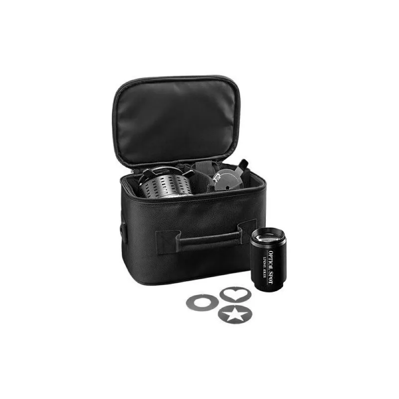There are 5 gel filters with gel clip for adding color and 8 gobo designs for project a focusable image or pattern of light. It attaches to a compatible light source using the included light mount