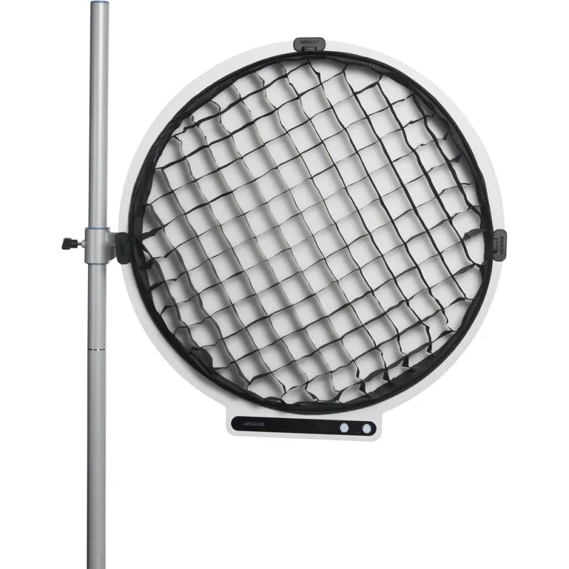 The amaran Verge Max Light Control Grid is designed for creators who need greater directionality and control from their amaran Verge Max circular panel light. Featuring a clip-on attachment and collapsible design, the Light Control Grid provides an effortless way to sculpt and refine your light output.