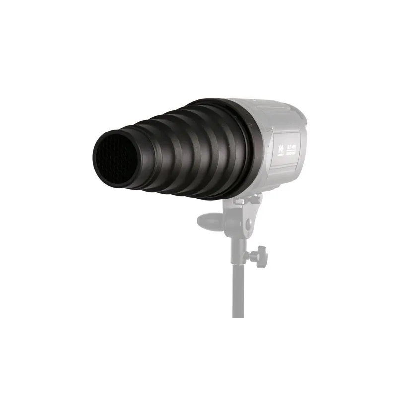 1x Conical snoot;1x Honeycomb;1x Connection for 144mm and 152mm adapter rings;1x Honeycomb;5x Color filter (white, green, yellow, red, blue)