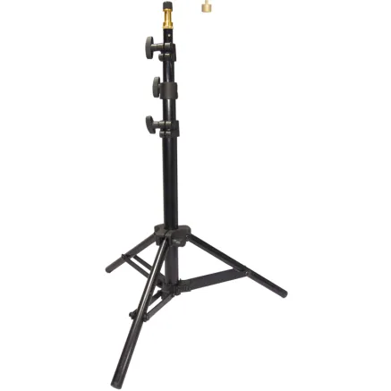 The Low Mini Kit Stand supports up to 1.5kg, has a standard 5/8 stud with 3/8 - 16 thread, and comes with a 3/8-16 female to 1/4-20 male adapter.