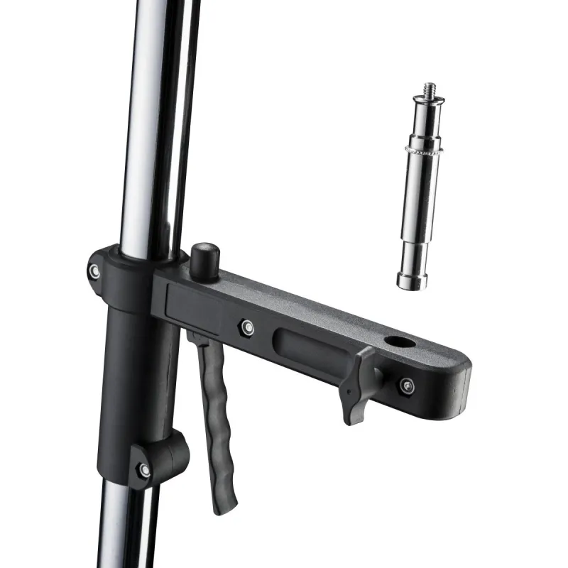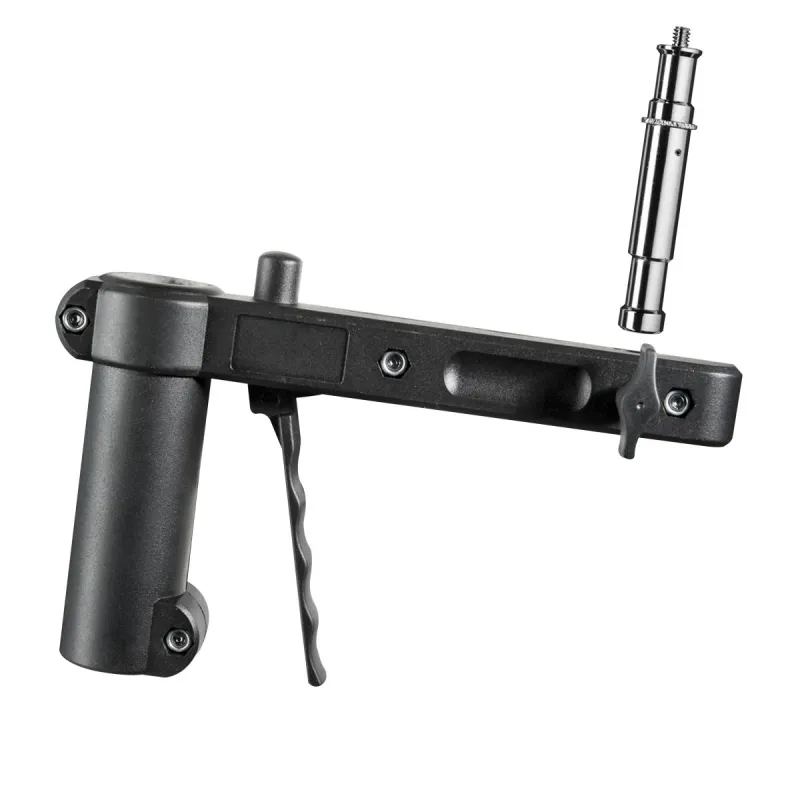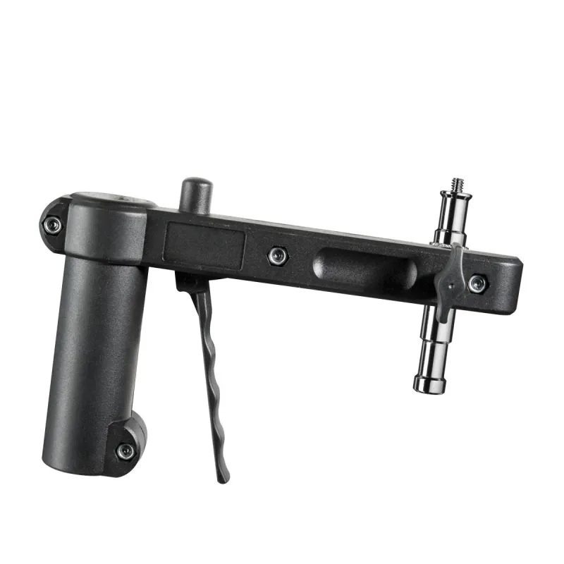 Stand for the usage on ceiling or wall extandable from approx. 34 to 54cm ideal for limited spaces, e.g. small studios or passport corners especially suitable: 5/8 spigot variably (on top and on the side) usable load capacity up to max. 6kg