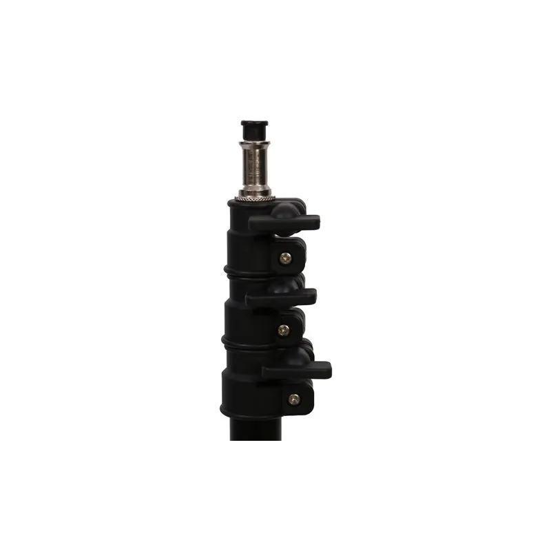 Compact aluminium lighting stand 3-section center column Maximum height of 242 cm Can carry up to 4 kg Sections are spring loaded