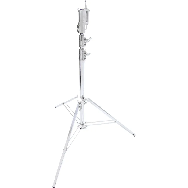 It is equipped with a leveling leg to extend one leg more than the others to level out the stand on an incline or uneven terrain.