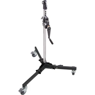 The Kupo 2-Section Low Base Wind-Up Stand with Auto Self-Lock is constructed from chrome-plated steel with a gear column, making it an ideal combination of strength and safety. The crank handle raises a maximum load of 35kg to a height of 190cm (74.8 inches) in 2.2cm (0.87 inches) increments per single clockwise revolution, and it features a self-locking mechanism for added safety.