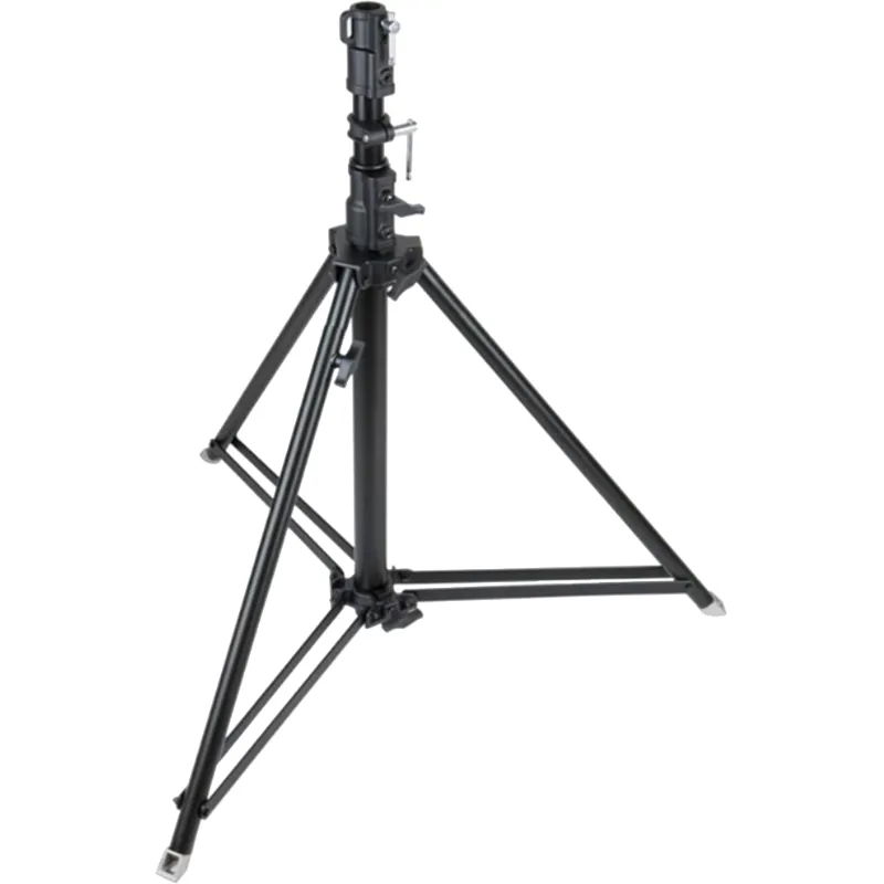 Kupo KP470 followspot stands are constructed from chrome plated steel, featuring a single riser that extends from 92cm to 147cm. The stand can be quickly leveled on uneven terrain by using the leveling leg.