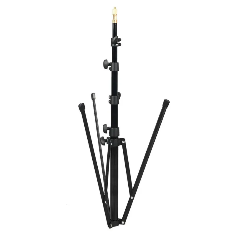 The Godox 210F Reversible Leg Light Stand is a compact and robust light stand with reversible and foldable legs. It can reach a height of 210 cm and mesure 50 cm once packed. The Godox 210F can carry a weight of maximum 2 Kg. This compact stand can be easily used in a studio or on a location.