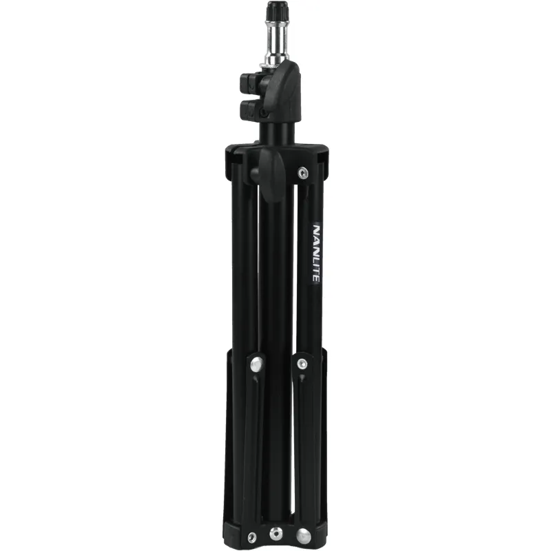 The NANLITE LS-60 light stand is a compact black anodized aluminum stand suitable for location shoots. The 5/8" stud top with a 1/4"-20 receiver makes it compatible with most standard equipment, the sure-twist lock offers secure locking with air-cushioned safety that will support up to 5 kg