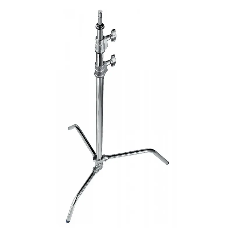 The tripod with Turtle Base features a chrome-plated steel construction, 3 sections and 2 risers. A sliding leg is also included to keep the tripod stable on uneven surfaces. This tripod will support a maximum load of 10kg and reach a maximum height of 3.28m. The tripod is also available in black.