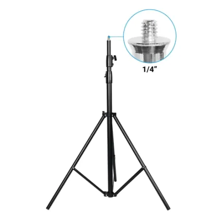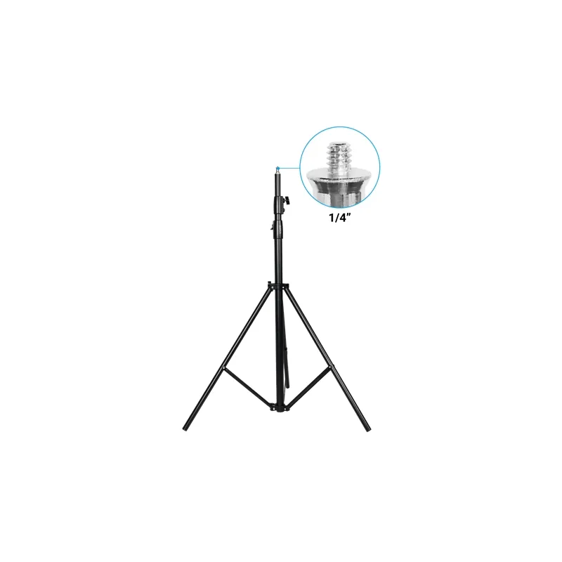 Large, air-suspended lamp tripod Aluminium lightstand with pneumatic shock absorption Black powder coating to prevent reflections Height adjustable: 120 - 280 cm Exchangeable spigot adapter 1/4" and 3/8" Height (folded): 98 cm