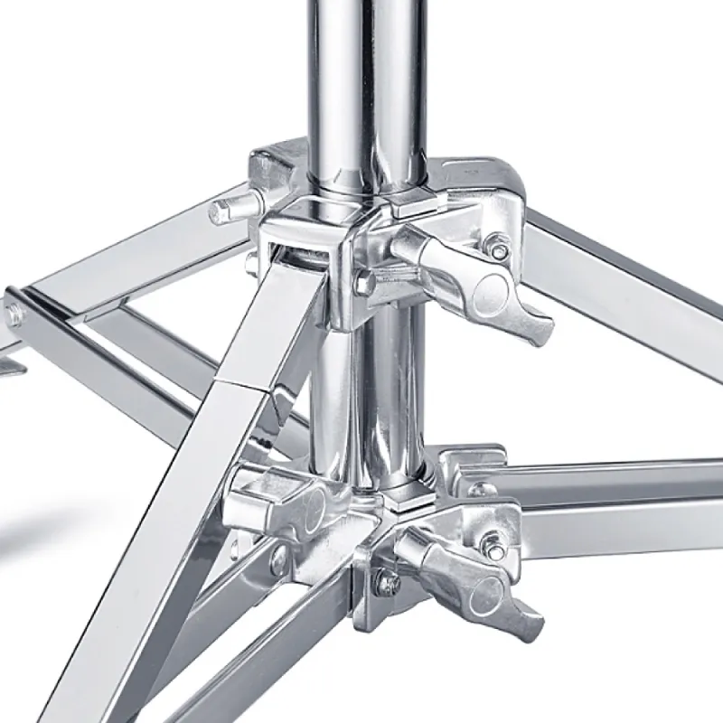 The Godox Roller Stand for Video Light SA5015 with folding base and wheels is a heavy-duty steel roller stand that can hold up tp 40 kg. With its solid material and reliable design, it prvides you with excellent stability. The unfolded height of the stand ranges from 92cm to 168cm. The stand has one adjustable leg that can extend to level it on uneven terrain, on stairs, or in tight spaces, and with a 1-1/8” Junior receiver and retractable 5/8”pin which can be swung 90 degrees to allow gear to be mounted vertically or horizontally.