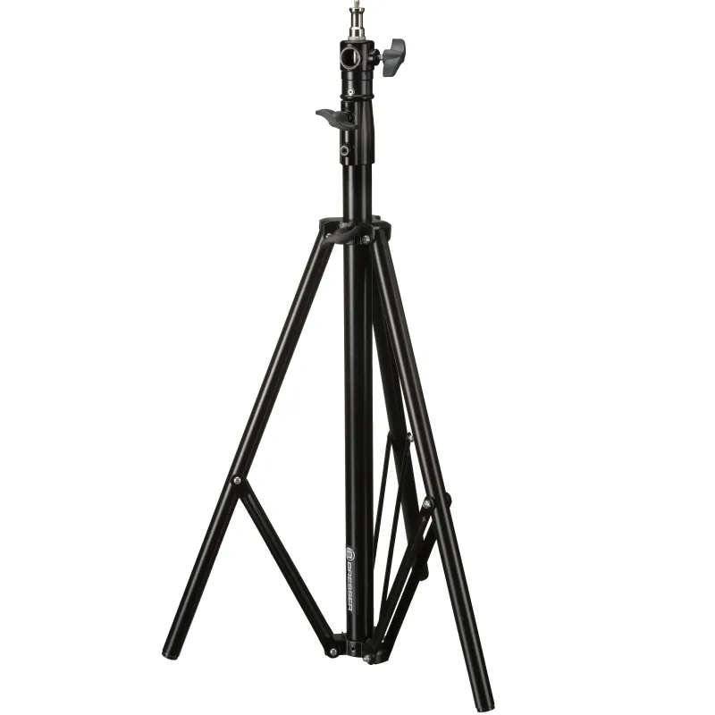air suspension system in the tripod, which catches any shocks when the flash head is released. To reduce reflection, the aluminum is coated with a black powder coating.