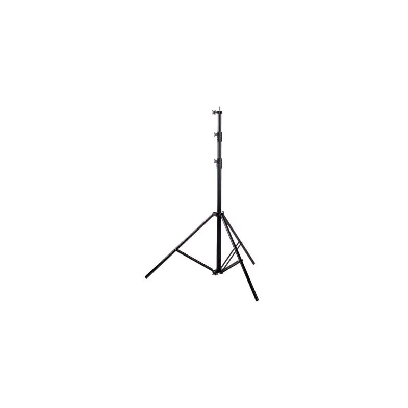 Compact aluminium lighting stand 3-section center column Maximum height of 242 cm Can carry up to 4 kg Sections are spring loaded