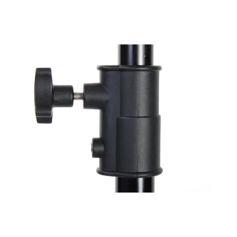 Compact aluminium lighting stand 3-section center column Maximum height of 242 cm Can carry up to 4 kg Sections are spring loaded
