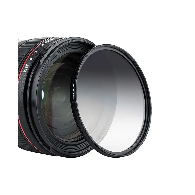 The frame is made of high quality aluminium alloy and the thickness is only 4.6mm, which can effectively avoid vignetting when using. The upper part of the frame is adjustable to change the using effects. Besides that, the filter comes with a delicate moisture proof filter case to protect your filter and for easy carrying. The JJC F G16 Gradual Neutral Density Filter has different thread sizes available from 49 82mm. ,