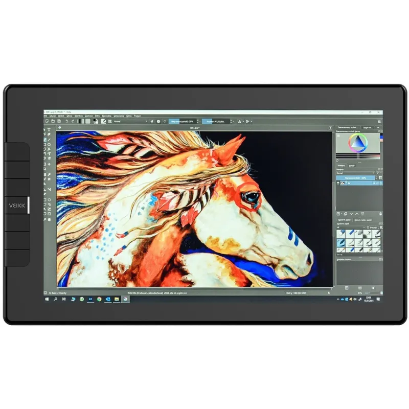 The Veikk VK1200 is a state-of-the-art 11.6″ LCD graphic tablet with a brilliant IPS display. Rich colors, fully laminated display, reduced parallax effect, precision performance – all enclosed in an elegant metal casing. Replace your mouse with the handy pen and see how easy “drawing on the computer” can be. Creating technical drawings, fabulous paintings and photo retouching will become not only work but, above all, great and developing fun. Unleash your artistic potential with Veikk VK1200 graphics tablet and fall in love with the magical world of computer graphics.