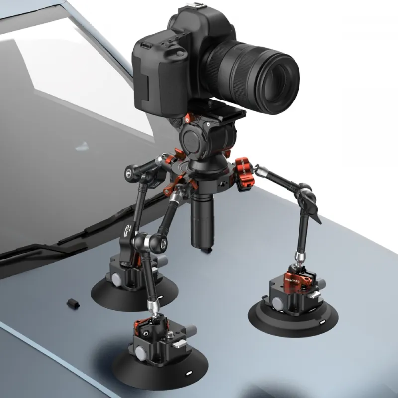 The Spider Crab Vehicle Mount System is an innovative, modular support system cleverly designed to provide both 'on' vehicle and 'in' vehicle camera support.