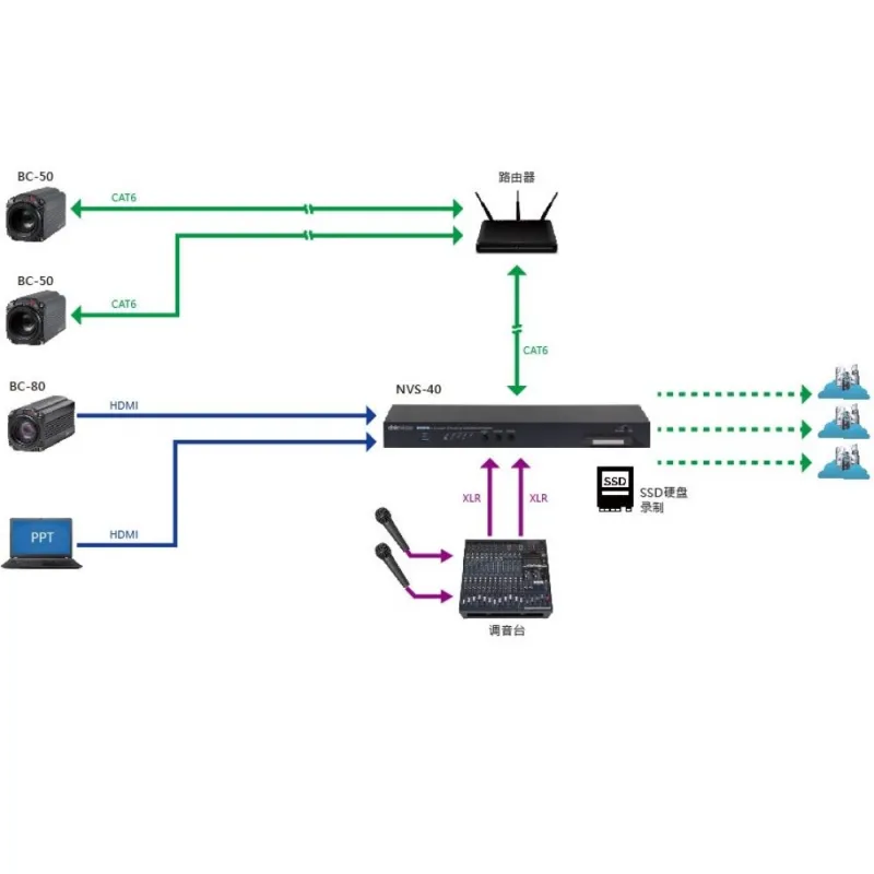 The easy-to-use web admin menu is accessable via a network connection. Control and configure the NVS-40 quickly and intuitively using a computer, tablet, or phone.