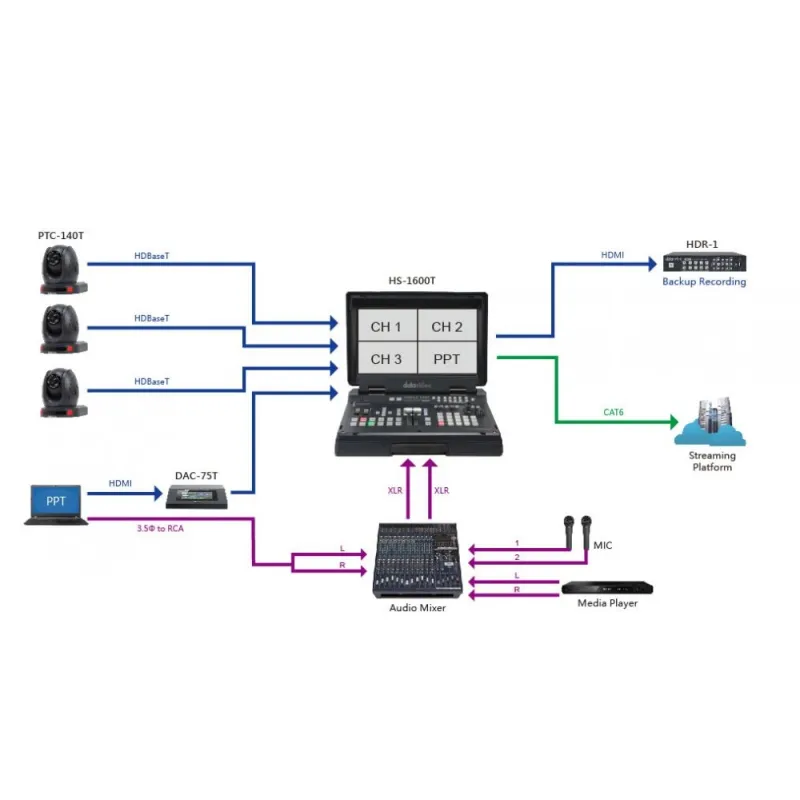 Using H.264 and AAC compression, the HDR-1 records video files in 1080p which are instantly ready to upload to your website or social media outlets, such as Facebook, Youtube, and more. Simply record your show, then connect your USB drive to a computer, and start uploading.