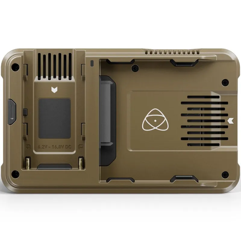 The Atomos 5 accessory kit includes a sunhood, screen protector, DC cable, quick charger, and two NP-F750 5200 mAh batteries.