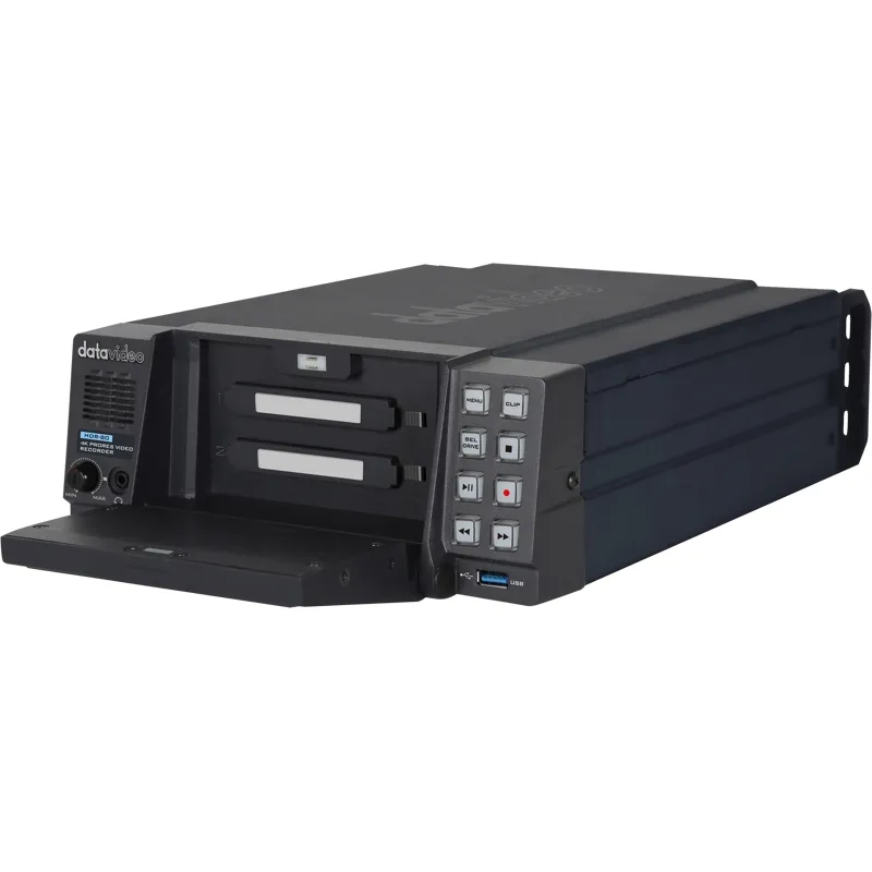 HDR-80 is a 4K ProRes recorders that record video on two SSD hard drives. HDR-80 has a high resolution 5” LCD touch screen on the front for video monitoring, device settings, and configuration. The monitor also provides a complete suite of scopes and calibration tools such as waveform, vectorscope, focus peaking to ensure perfect recording.