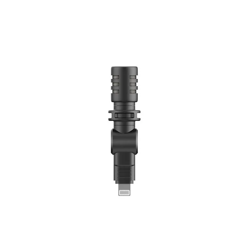 The Boya BY-M100D is an omnidirectional condenser microphone designed for Apple devices from iOS 10 and up. You plug it directly into the Lightning connector of your iPhone, iPad or iPod. The microphone draws its power from the device you plugged it into, therefore it does not require a battery. All you have to do is launch a video or audio app and you are ready to record. The microphone is equipped with a pivot point which can be adjusted in 180 degrees.