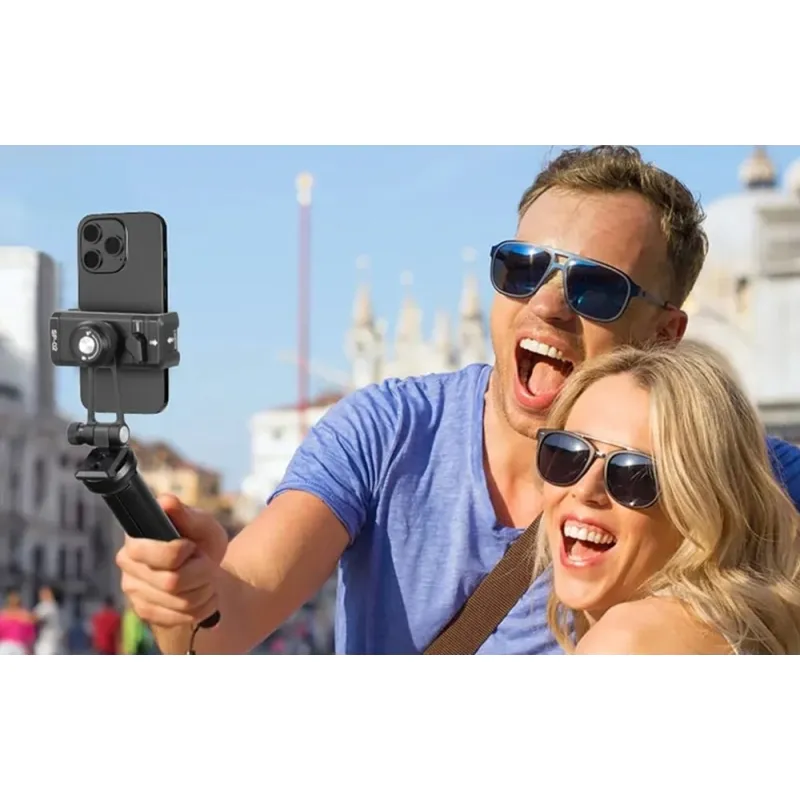 Arca tipo pagrindas leidžia akimirksniu pritvirtinti adapterį prie trikojų galvų, suderinamų su Arca Swiss sistema. Jei naudojate kitus priedus, dvi sritys - 1/4" ir 3/8" - suteikia jums lankstumo renkantis trikojį ar ranką. Be to, galva leidžia 270 laipsnių sukimosi ir 180 laipsnių pasvirimo, leidžiančio sklandžiai pereiti iš horizontalios į vertikalią poziciją, nesukant telefono.