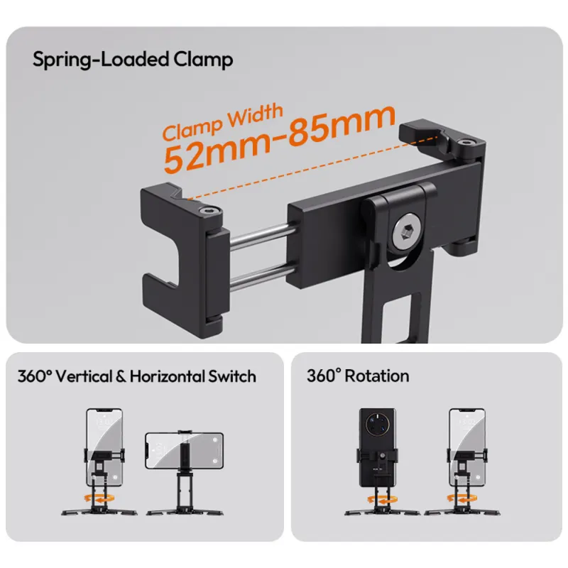 Ulanzi SK29 daugiafunkcinis fotografijos telefono laikiklis (telefono klipas) sukurtas kūrėjams, siekiantiems maksimalaus lankstumo be rūpesčių. Šis protingas, tvirtas laikiklis saugiai laiko jūsų išmanųjį telefoną ir lengvai pereina tarp kelių fotografavimo režimų, kad užfiksuotų kiekvieną sceną. Kur bebūtumėte, užfiksuokite akimirką taip, kaip norite.