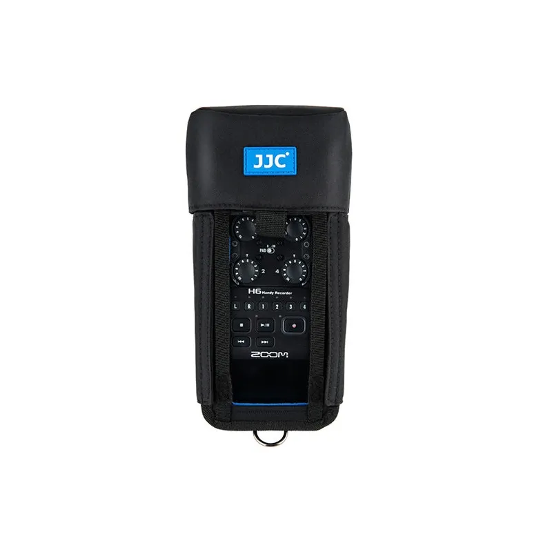 The JJC HRP-H6 Handy Recorder Pouch is a handy bag designed for the Zoom H6 audio recorder. The practical design makes your recorder fully accessible for use with the pouch. You wear the HRP-H6 in all sorts of ways through the different mounting options. The pouch has a belt loop, a mounting sleeve for tree poles and a D-ring. In addition, the HRP-H6 has a removable microphone cap to protect the microphone element against dust and humidity.