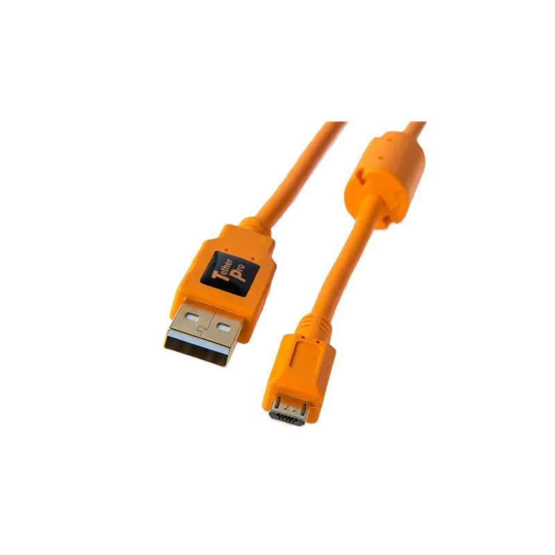 TetherPro kabelis prijungiamas prie fotoaparato per Micro-B 5 Pin prievadą. Jis sukurtas ir pagamintas pagal aukščiausias USB specifikacijas, užtikrinant puikų našumą greičiu ir patikimumu. Jei reikia prijungti didesniu nei 15 pėdų atstumu, apsvarstykite galimybę naudoti USB 2.0 aktyvų prailginimą, kad išlaikytumėte signalo vientisumą ir sumažintumėte triukšmą.