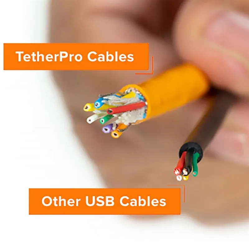 TetherPro USB į USB-C kabelis leidžia tiesioginį sujungimą tarp USB-C kameros ir kompiuterio be adapterių.