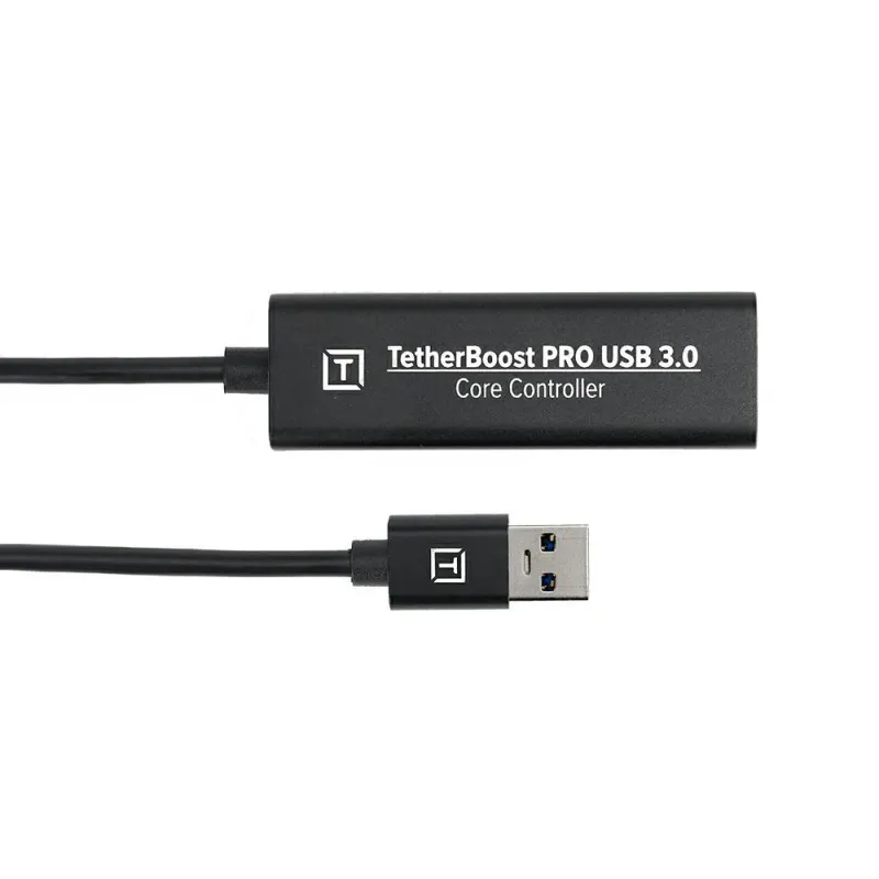 The Tether Tools TetherBoost Pro USB 3.0 Core Controller is designed to address common issues with USB 3.0 tethered connections, such as dropped connections and unstable data transfer. This device helps ensure a consistent and reliable connection for photographers using DSLR or medium-format digital back systems connected to a computer via USB 3.0 cables, supporting distances up to 65 feet.