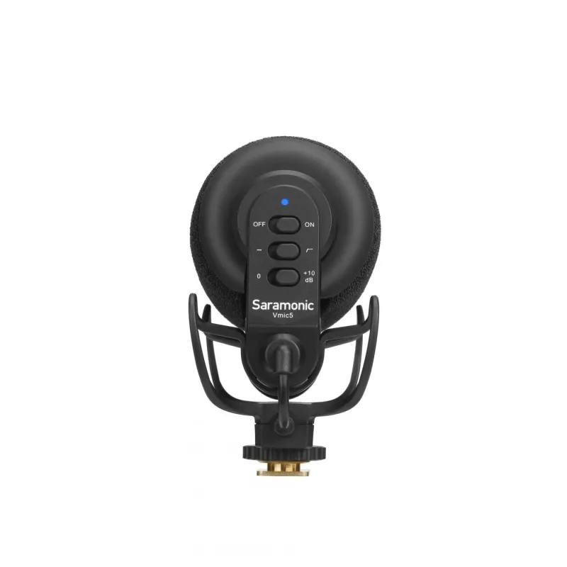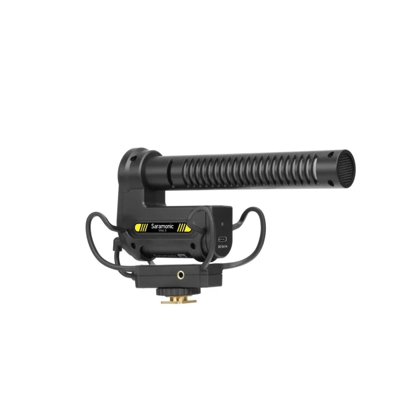 The Saramonic Vmic5 is a super-cardioid condenser microphone offering high quality recorded sound. The ultra-lightweight housing will provide optimal comfort for DSLR cameras, camcorders and audio recorders. It can be conveniently installed on a threaded quick-release coupling or a cold shoe, and a specially designed shock absorption system will neutralize vibrations and shocks. The microphone allows you to reduce unwanted ambient noise, while offering a high-pass filter and +10 dB gain. The built-in 2000 mAh battery provides up to 150 hours of battery life, and an additional 3.5 mm mini jack output allows you to connect headphones to the device and enjoy high-quality, latency-free listening.