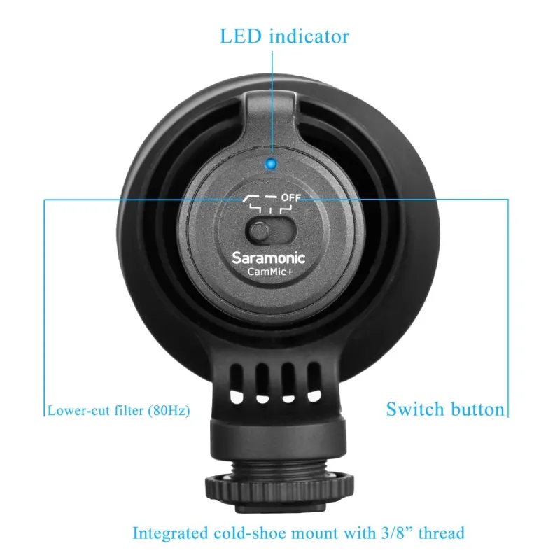 The Saramonic CamMic+ is an active condenser microphone giving excellent sound quality during video recording for filmmakers and sound engineers.
