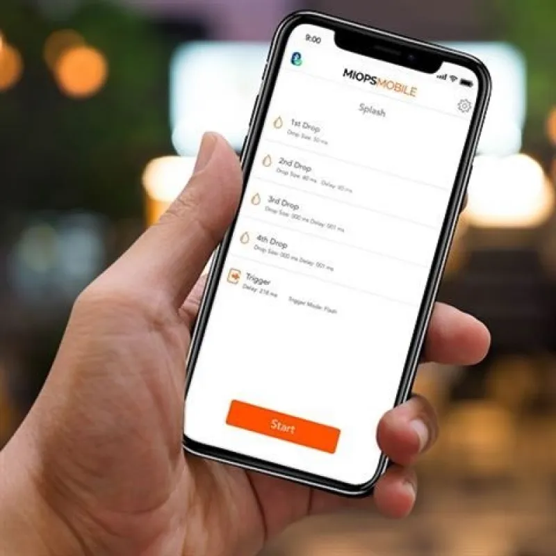 The Miops Splash is the world's first automated water droplet kit, allowing you to take beautiful water droplet photos. The Splash controls the water supply, camera and external flash to guarantee a successful result. You operate the system with a free app on your iPhone or Android smartphone. The app allows you to set the size of the water drop(s) and indicate when the flash and camera are triggered.