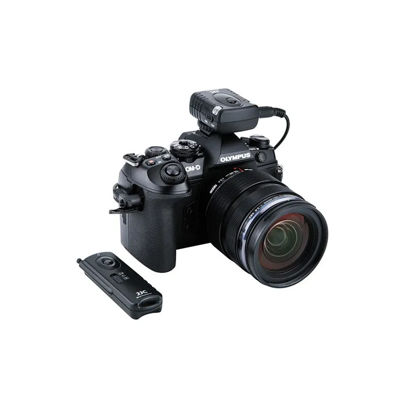 The JJC JM-J2 (II) Wireless Remote Control is made for the Olympus E-M1 Mark II system camera. The remote control works on a 433MHz frequency and has 16 channels. In addition, the JM-J2 (II) has a range of thirty metres. The receiver can simply be connected to the camera's hotshoe, after which the receiver can be connected to the E-M1 Mark II via the supplied cable.