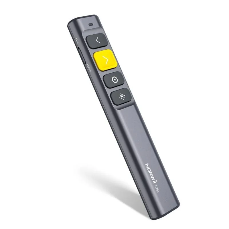 You can give multimedia presentations, delighting your audience and focusing on what's most important - imparting knowledge, inspiring and evoking positive emotions. Whether you're at a conference, school or business meeting, Norwii N28s will help you capture your audience's attention, highlight the most important information and share your knowledge effectively. Built-in laser pointer The Norwii N28s remote control is not just about controlling slides. The built-in laser pointer allows you to precisely highlight important elements on the screen. Whether you're giving a motivational lecture, a lesson or a training session, this tool is sure to make your job easier. Use it to highlight key points in your presentation from up to 200 meters away.