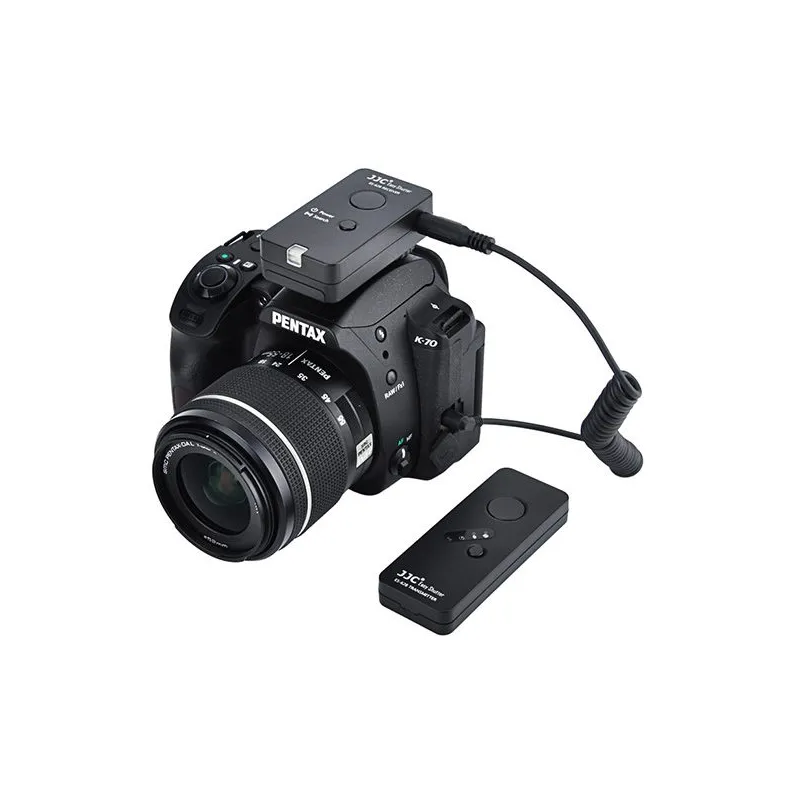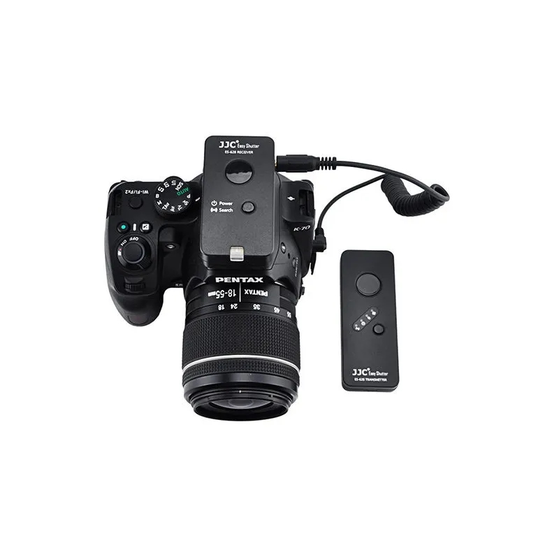 The JJC ES-628PK1 is a replacement wireless remote control for the Pentax CS-310 remote control. This set consists of a transmitter, a receiver and a connecting cable that allows you to remotely control your camera. This prevents unwanted camera shake and allows you to easily take pictures of difficult to approach subjects, such as wildlife. The receiver is powered by two AAA batteries and the transmitter by one CR2032 button cell battery.
