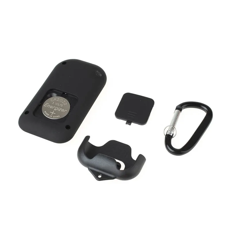 The JJC IR-S2 runs on one CR2032 button cell battery and comes with a handy holder and carabiner for attaching to your photo bag or a belt loop on your trousers.