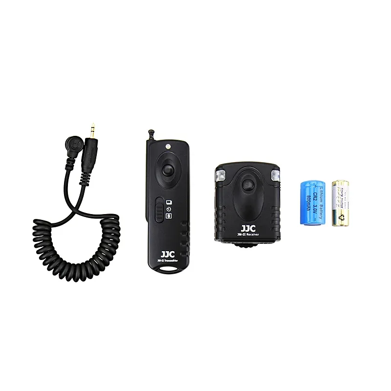 The JJC Wireless Remote Control 30m JM-A II is a set with a receiver and a transmitter that allows you to control your Canon camera wirelessly. The system works on a 433MHz frequency and has 16 different available channels. You can trigger the camera from up to 30 metres away without the transmitter and receiver being in sight of each other.