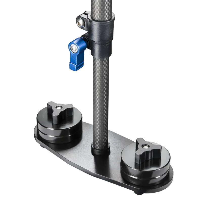 The Staby Pod steadycam offers numerous adjustment possibilities: The camera mount can be moved forward and backward, but also to the right and left. A scaling ranging provides additional help. he counterweights can be individually and simply inserted. The steadycam can be extended to maximum 40cm.