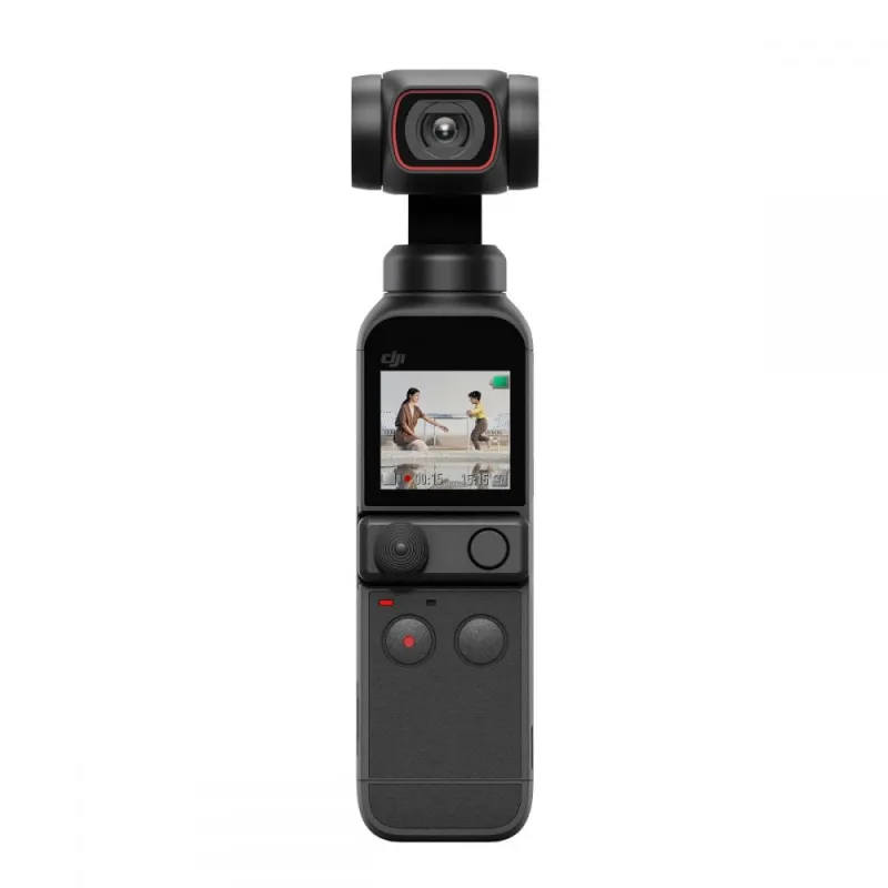 Sverianti vos daugiau nei 4 uncijas, ši viskas viename įranga turi 3 ašių gimbal stabilizatorių sklandžiam judėjimui ir lengvam panoraminio bei pasvirimo valdymui. Pocket 2 naudoja 1/1.7" jutiklį ir plačią 20mm, 93 laipsnių matymo kampo objektyvą, kad užfiksuotų iki kino lygio 4K60 vaizdo įrašus 100 Mb/s greičiu ir 64MP statines nuotraukas į microSD kortelę iki 256GB talpos. Keturi mikrofonai leidžia užfiksuoti pagerintą stereo garsą, jie turi triukšmo mažinimo ir priartinimo funkciją, kuri seka jūsų kameros priartinimą, kad užfiksuotų pagerintą garsą siaurame kadre. Kamera gali naudoti 8x priartinimą statinėms nuotraukoms, 4x priartinimą 1080p vaizdo įrašams ir garsui, 3x priartinimą 2K vaizdo įrašams ir 2x priartinimą 4K vaizdo įrašams.