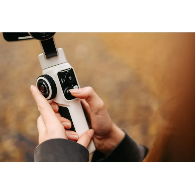 Shrunk by 40% of its predecessor, the 3-axis gimbal is an ultra-mobile plug-and-play gimbal. With free movements from high to low angles, its 3-axis range has been updated to support 360° unlimited panning, 349° tilting, and 300° roll. The design of the rear-mounted motor enables you to shoot ultra-wide-angle videos without worrying about any block when using ultra-wide angles on your phone.